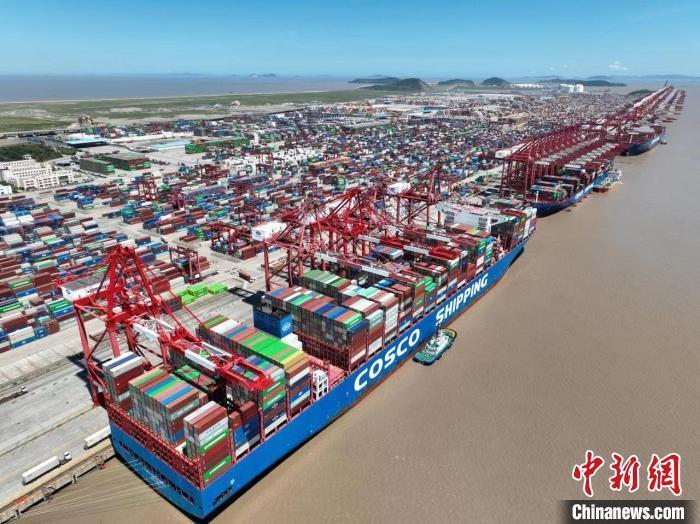 7月,洋山深水港集装箱吞吐量超210万标箱。 洋山边检站供图