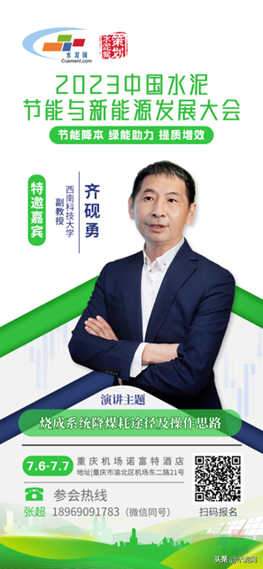 ”,届时西南科技大学副教授齐砚勇将以《烧成系统降煤耗途径及操作思路》为主题做精彩演讲,想要了解更多信息,欢迎报名参加!