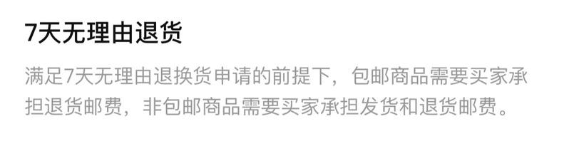 可见,为了避免运费纠纷,商家应当在产品页面明确提醒,“无理由退货”不是“无成本退货”,并且明示“无理由退货”的相关条款。