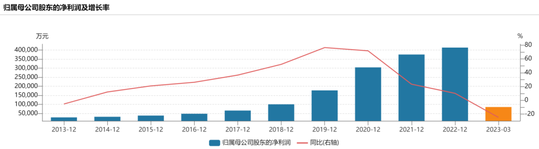 上面两张图片,是长春高新最近10年的营收和利润的增长图,可以看到,尽管从2019年之后增速有所放缓,但是依然非常稳定和线性。