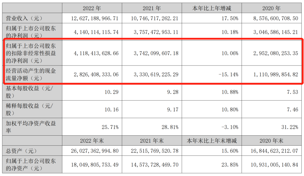 2022年公司及各子公司经营稳健,实现营业收入126.27亿元,较上年同期增长17.50%;实现归属于上市公司股东净利润41.40亿元,同比增长10.18%。