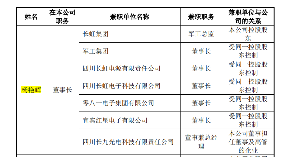 值得一提的是,华丰科技的董事长杨艳辉身兼数职,不仅是长虹集团军工总监,还是军工集团董事长、四川长虹电源有限责任公司董事长、四川长虹电子科技有限公司董事长、零八一电子集团有限公司董事长以及宜宾红星电子有限公司董事长。