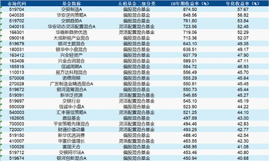 十年期偏股混合基金表现最突出