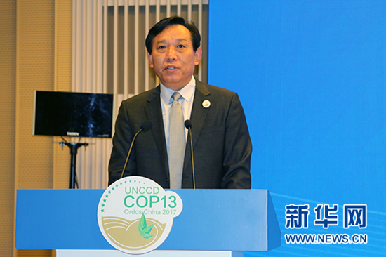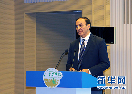 联合国防治荒漠化公约秘书处副执行秘书普拉迪普·孟噶致辞。 新华网 郭香玉摄