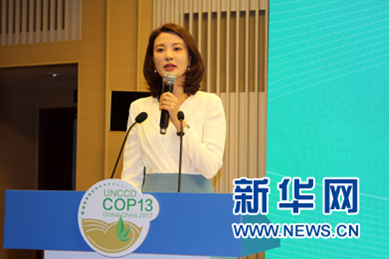 联合国“旱地大使”、中国绿化基金会“公益推广大使”刘芳菲发起倡议。 新华网 郭香玉摄