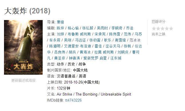 经过一系列调查,原由是一部于今年即将上映的电影《大轰炸》,查阅该电影的豆瓣条目,阵容颇为瞩目。