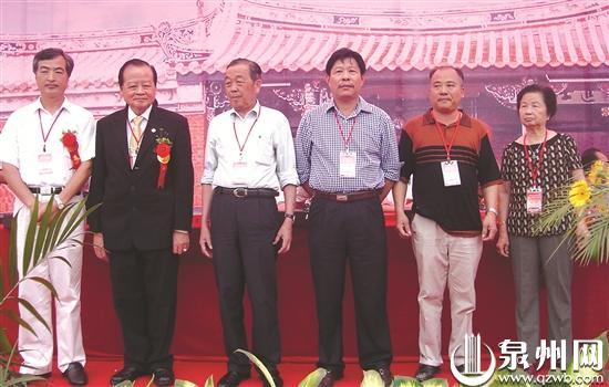 族贤丁和木(左三)与丁金潮(右三)出席丁氏宗祠晋升“全国文物保护单位”庆典