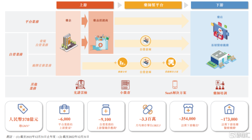在平台业务,药师帮无缝链接了上下游,简化了中国院外医药市场的多层结构和医药交易流程。