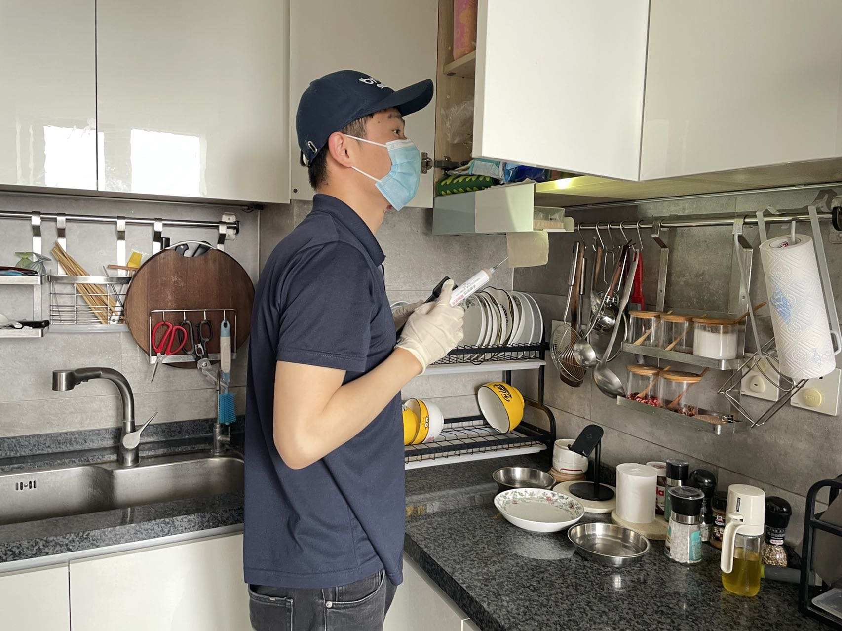 “从粪便痕迹看,上个月是比较严重的,现在已经控制住了。”北京市朝阳区一小区,有3年工作经验的95后除虫师李猛良拿着一个注射筒,埋头往厨房柜子里“点”灭螂药。