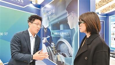 数字经济是“隐形冠军”企业的重要领域。2023元宇宙产品高规格展会上,多家企业展出近百款元宇宙相关产品或技术,提供工业、文旅、娱乐等领域应用解决方案。图为观展方在体验可视同步翻译眼镜。张从余摄(人民视觉)
