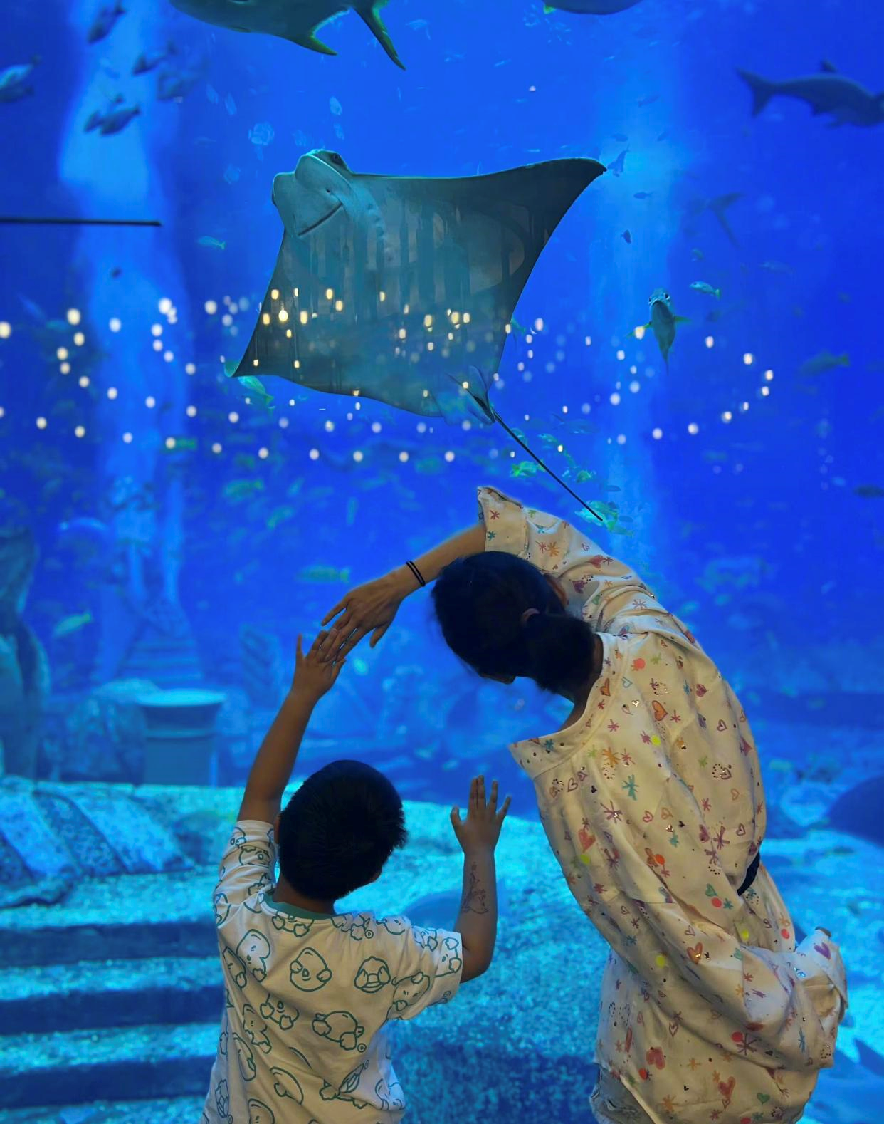 8月8日零点,陈思诚在社交平台晒出佟丽娅和儿子在水族馆比心的合影,喊话佟丽娅“朵朵妈,生日快乐”。