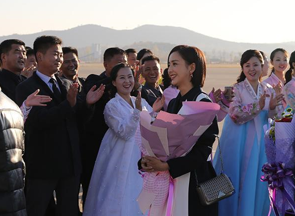 而只要是她所到之处,都能听到当地民众的欢呼喝彩,很多朝鲜朋友还争相跟她要签名。