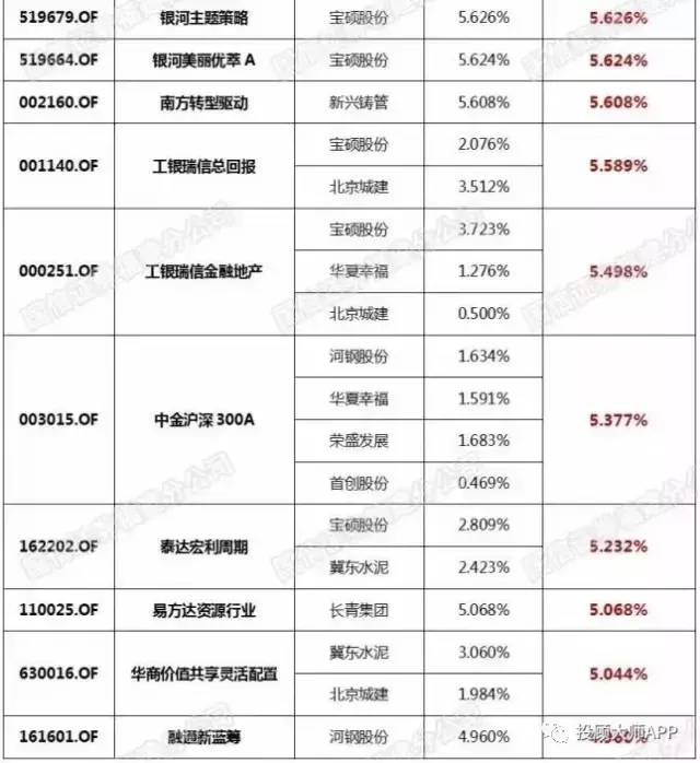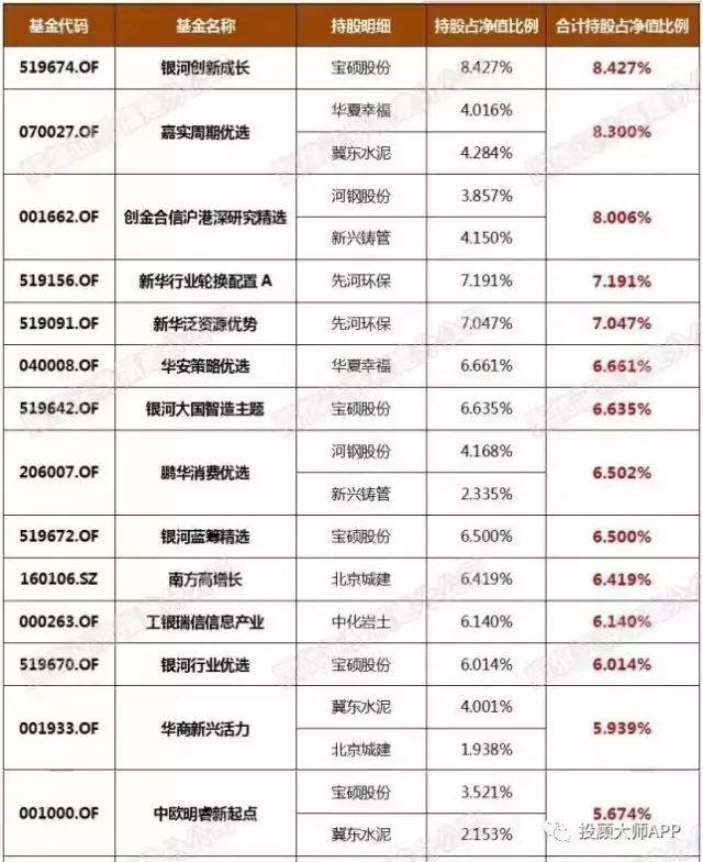根据各基金2016年基金年度管理报告数据,经过重新整理和筛选,列出了持有“雄安概念股”仓位较高的基金名单。银河创新成长、嘉实周期优选、创金合信沪港深研究精选等基金的持股占净值比例高达8%,新华行业轮换配、新华泛资源优势占比超7%。