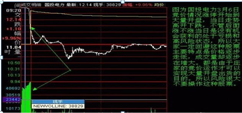 先来看看涨停大量出货的,因为这种情况对大部分散户危害最大,所以大家一定要有所掌握。主要表现价格会逐步走低比涨停价要低,成交量不断则增加,都是因为大量的卖出造成的。看看国投电力2009年3月6日竞价情况: