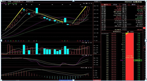 盘中股价多次回调,但都在均价线的支撑下走出反弹,说明这条线的支撑非常强,从买点角度看,每次回调至均价线都是个适合低吸的好位置。