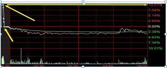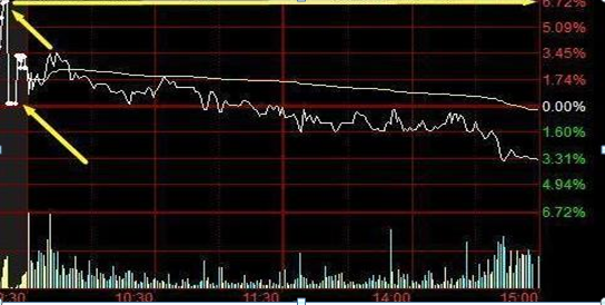 2、当股价高开7%-9%,如果临近竞价结束下砸,成交量放大到首板爆量一倍以上最佳,分时跳水不宜超过3%;
