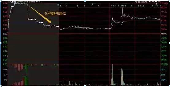 我们能够看到,在集合竞价前5分钟,价格显示是涨停的,之后5分钟之前的几秒,瞬间回到下方的位置,为何?因为那时候是禁止撤单了, 如果在这之前你没有撤单,那么你的单子将进入集合成交阶段。主力往往在9:15至9:20之间进行虚假买卖大单,导致价格大幅变动。第一个案子就是典型的诱多,在集合竞价的时候显示是涨停板,让投资者兴奋,认为今天你有可能涨停,之后再大量委托卖出,那么多数投资者成为了接盘侠,股价一蹶不振。