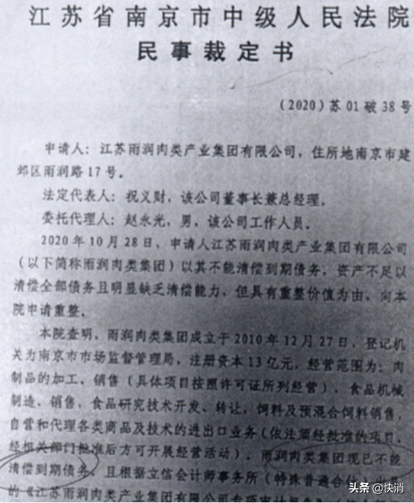 就债权重整进度等相关问题,快消君曾联系雨润集团方面,但截至发稿未得到相关回应。