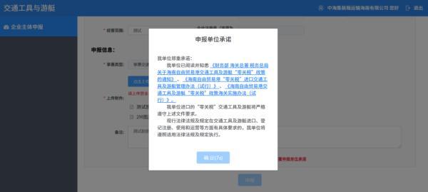 进口企业需在申报时承诺已阅读并知悉《财政部 海关总署 税务总局关于海南自由贸易港交通工具及游艇“零关税”政策的通知》、《海南自由贸易港“零关税”进口交通工具及游艇管理办法(试行)》、《海南自由贸易港交通工具及游艇“零关税”政策海关实施办法(试行)》,同时承诺进口的“零关税”交通工具及游艇将严格遵守以上三个文件的各项要求。