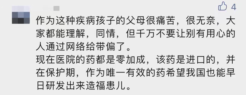 “我孩子得的脊髓性肌萎缩症,需要用进口药诺西那生钠治疗,用药是我同意的。”