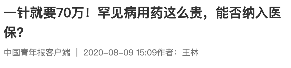 对于网友提及的“医保报销”,去年8月,中国青年报就关注过诺西那生钠进医保的问题。