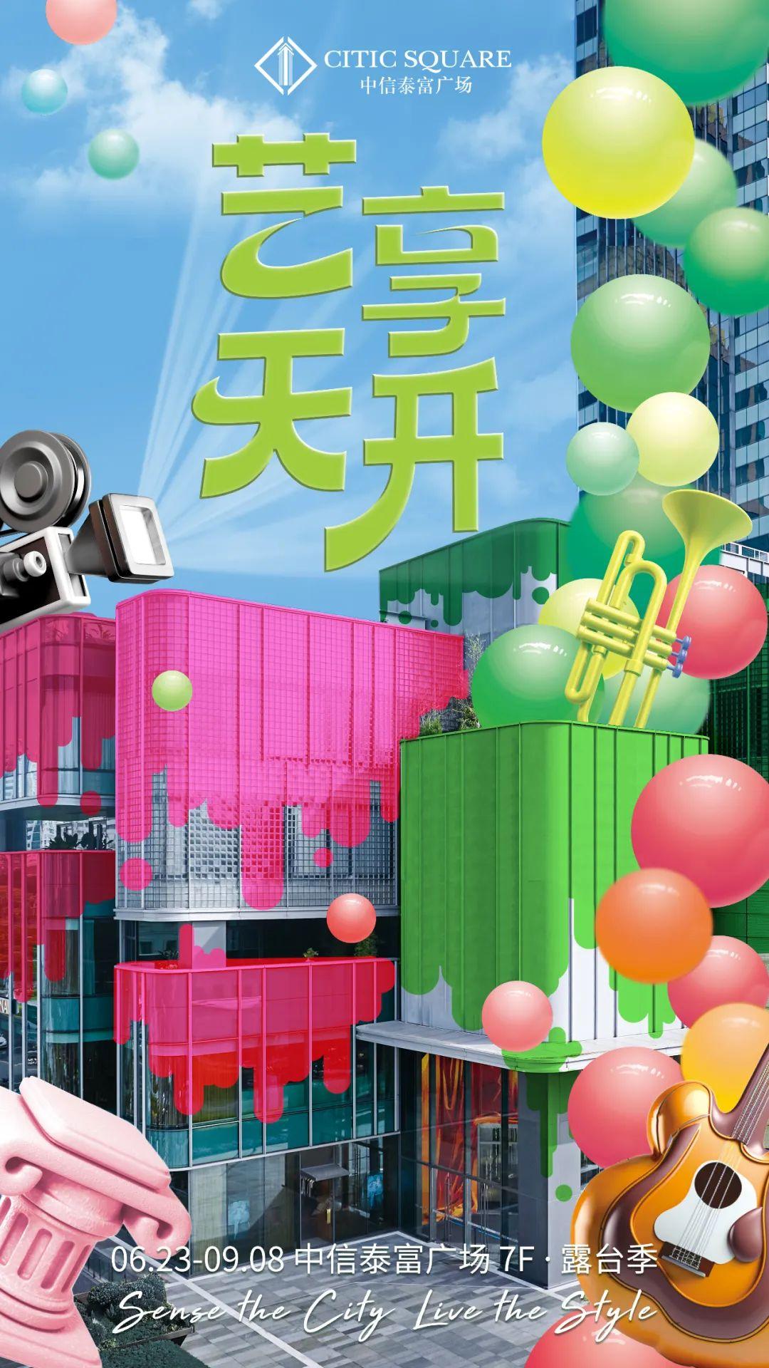 借力中信泰富广场“露台经济”IP的第一张牌——“艺享天开”露台季KV,“第二届静安露台季”延展和汇聚了众多区内优质商业项目,整合性的打造了南京西路商圈夏季城市文艺风向标。
